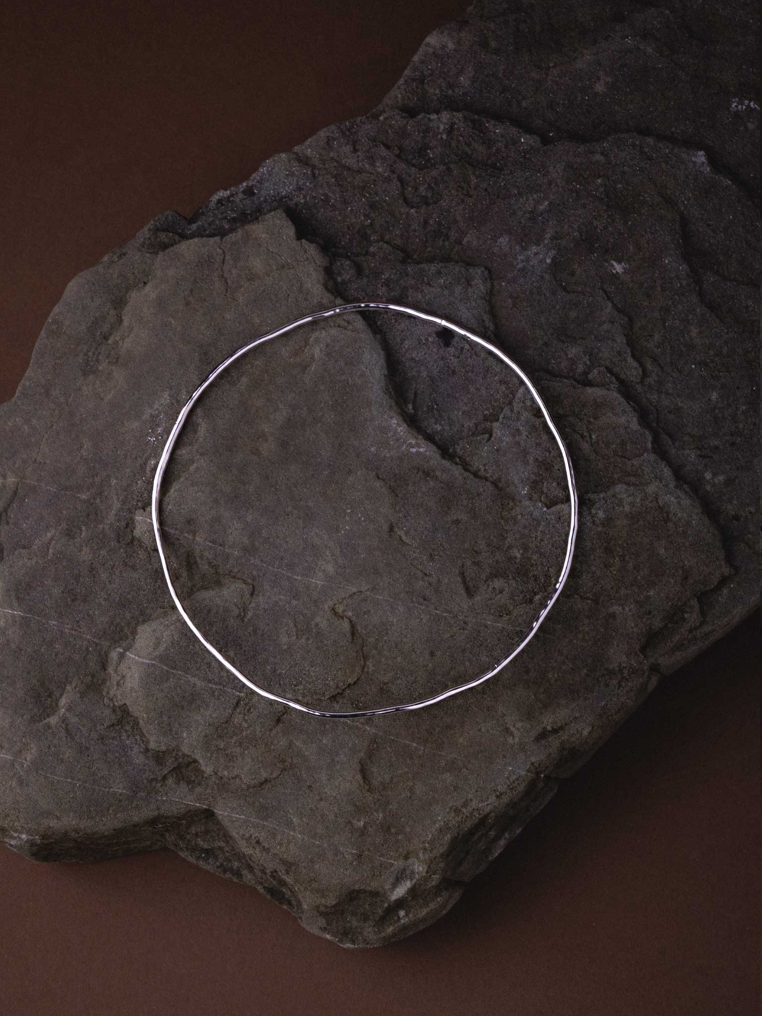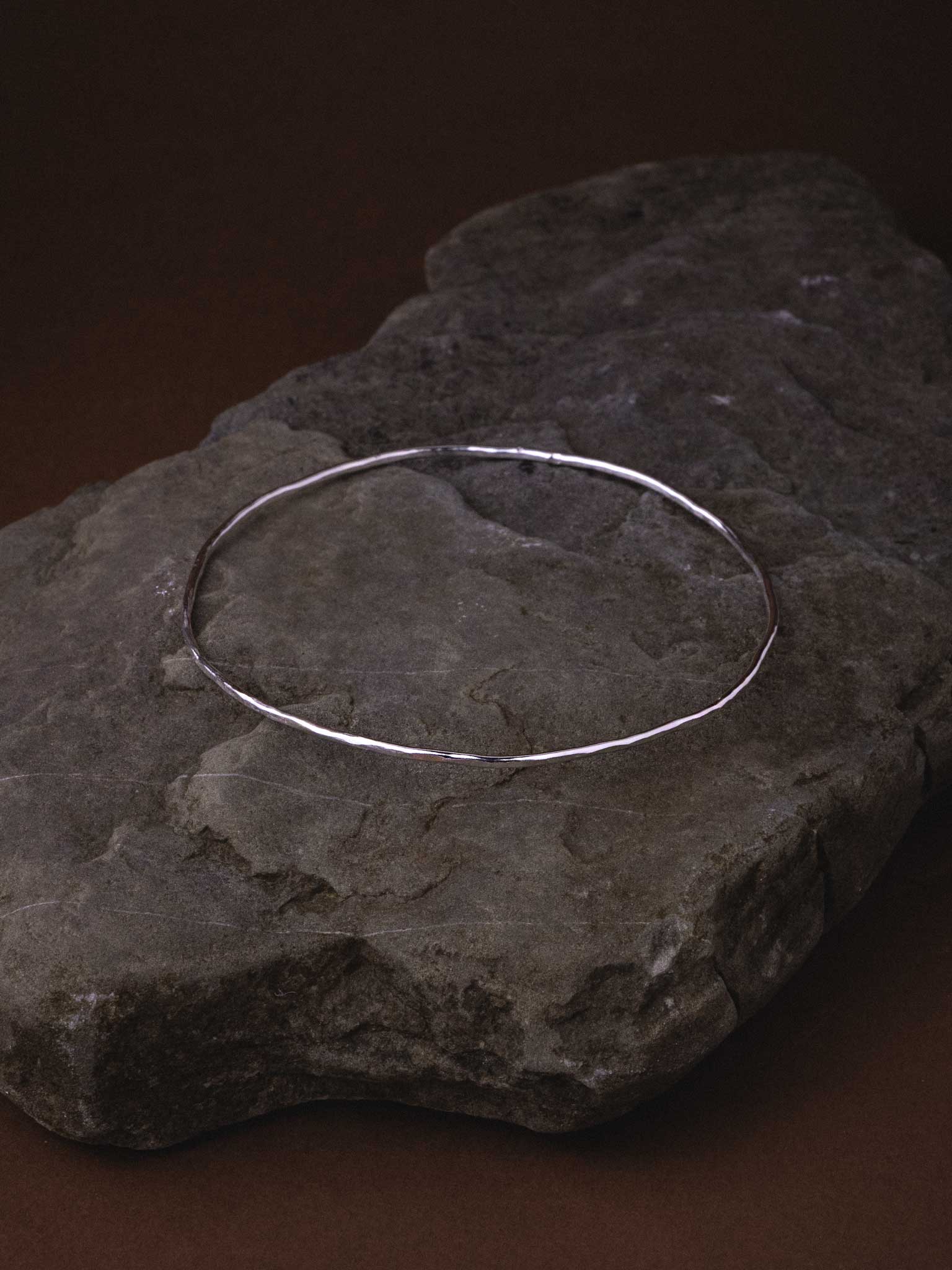 Λεπτή χειροποίητη ασημένια βέργα με ελαφριά σφυρηλάτηση.