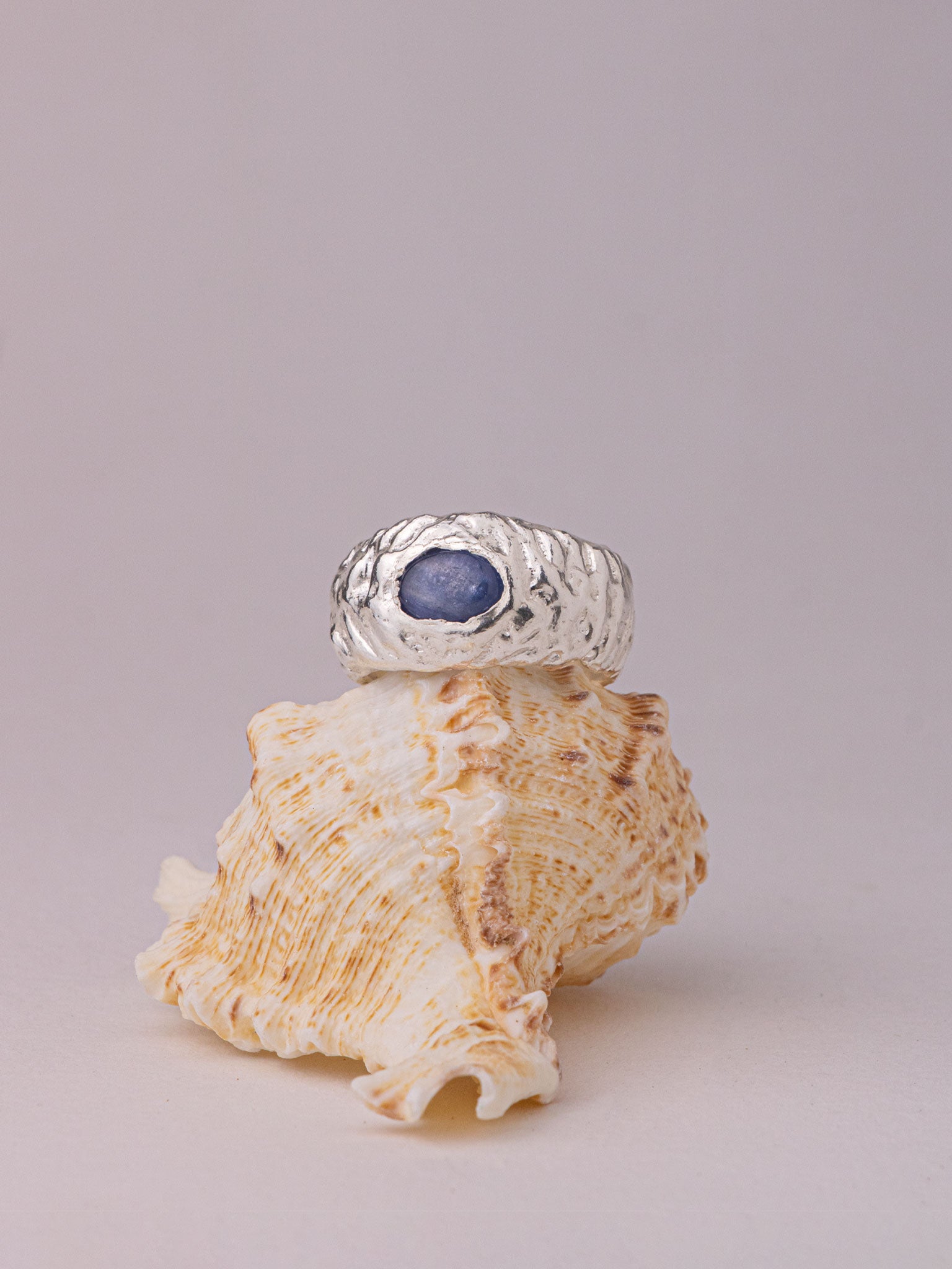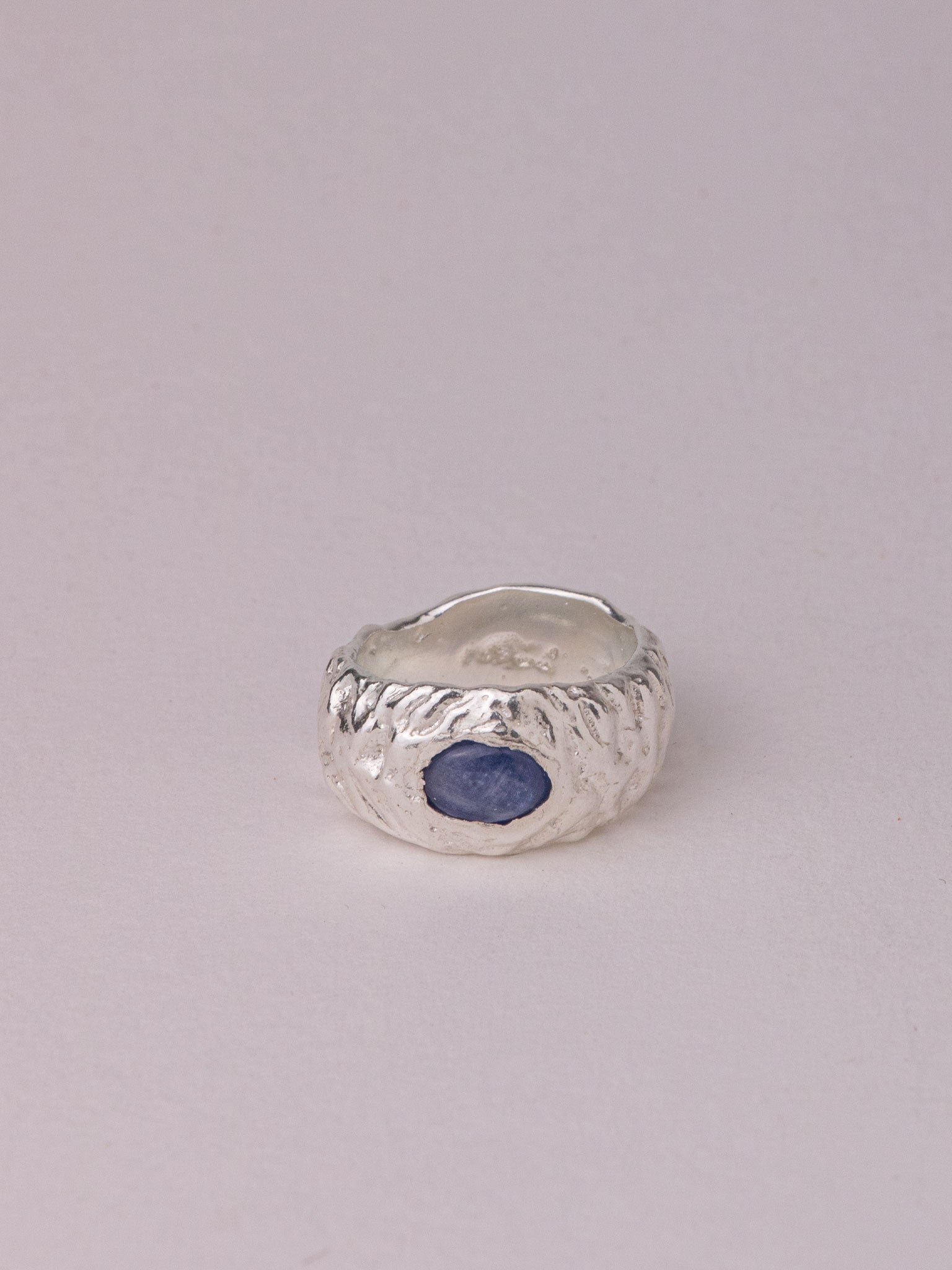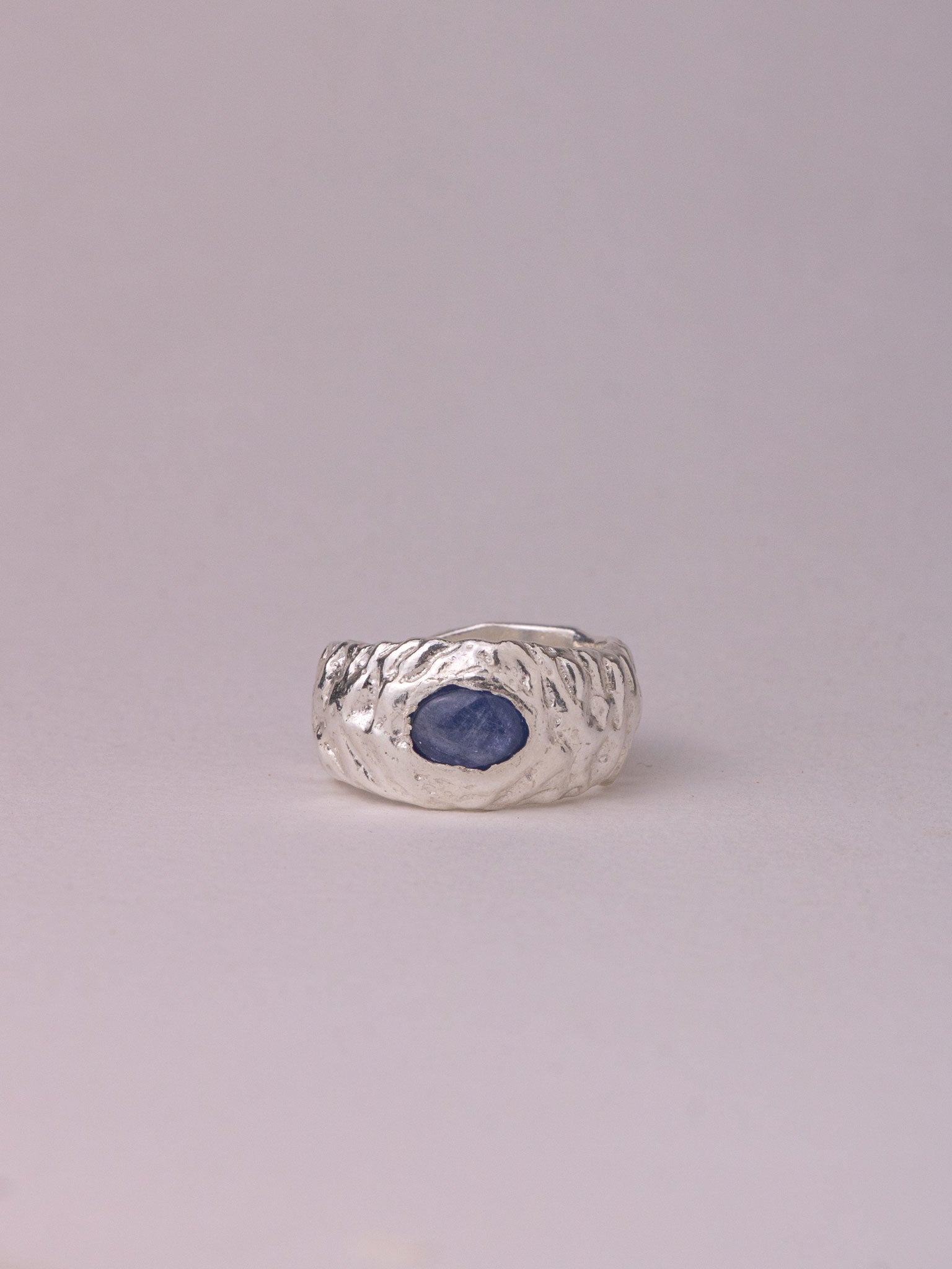 Χειροποίητo χυτό δαχτυλίδι από καθαρό ασήμι με Κυανίτη. Κάθε κομμάτι έχει σχεδιαστεί, χυτευτεί και διαμορφωθεί στο εργαστήριό μας.