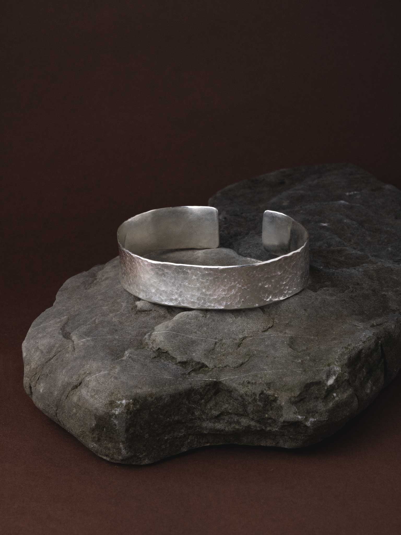 Χειροποίητο ασημένιο ανοιγομενο βραχιόλι με σφυρηλάτηση.